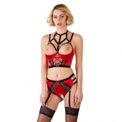 L’ensemble de lingerie Abierta Fina comporte un bustier en satin avec soutien-gorge lĂ©gĂšrement rembourrĂ© et tour de cou ajustable. Un effet ouvert seins-nus.