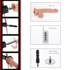 Dans le dĂ©tail : La machine et son chĂąssis sont en mĂ©tal robuste. Le gode fourni est PVC ultra-souple hypoallergĂ©nique, sans phtalate et sans Latex. Ses dimensions insĂ©rables sont de 13,5 cm de longueur pour un diamĂštre de 3,2 cm. L’alimentation se fait par un transformateur 220V /24V Ă brancher sur le secteur. Le moteur offre 3 longueurs de course avec une vitesse variable allant de 1 Ă 285 “va et vient”/minute. La tĂ©lĂ©commande fonctionne avec 1 pile LR23 A23 fournie (Si vous devez la remplacer, sachez qu’elle est prĂ©sente Ă l’achat sur RdP). Enfin, l’embout reliant la machine aux godes est au format standard “Vac-U-Lock“. Ce dernier caractĂ©rise la plupart des godes de la marque Doc Johnson, ce qui vous permettra de varier davantage les plaisirs avec des godes de toutes sortes.