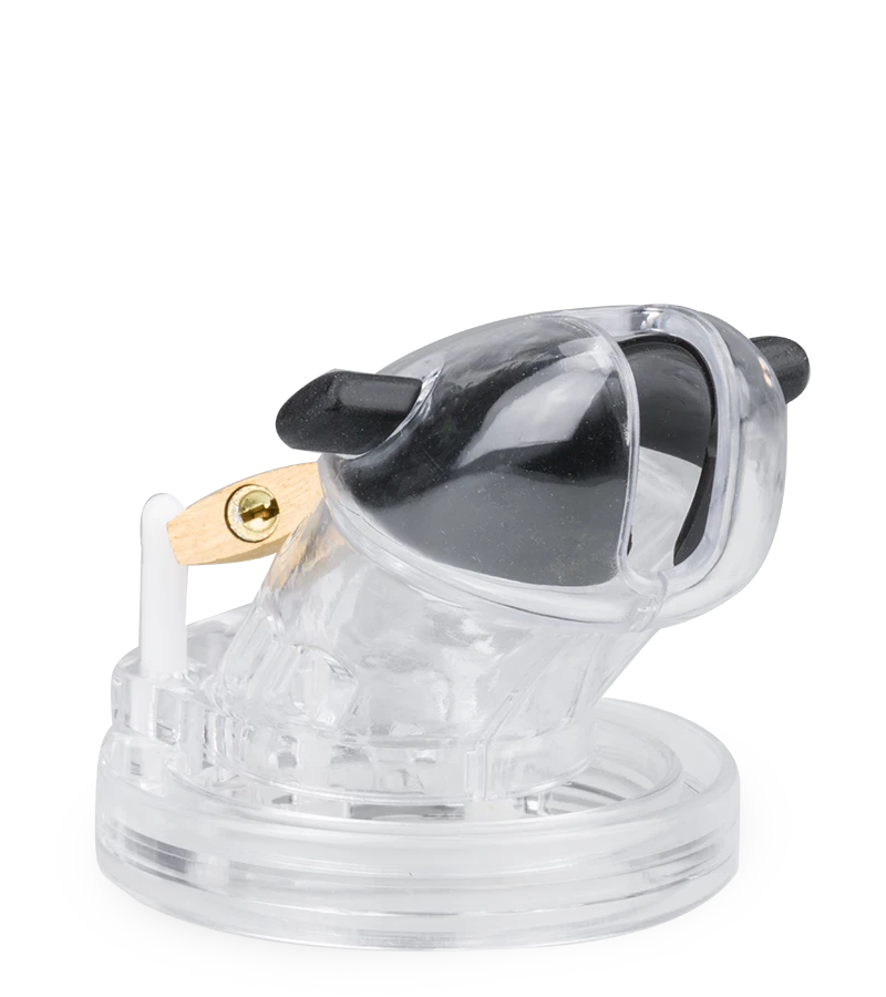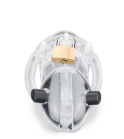 Emprisonnez votre pénis et contrôlez votre plaisir avec cette cage chasteté électro stimulation transparente.