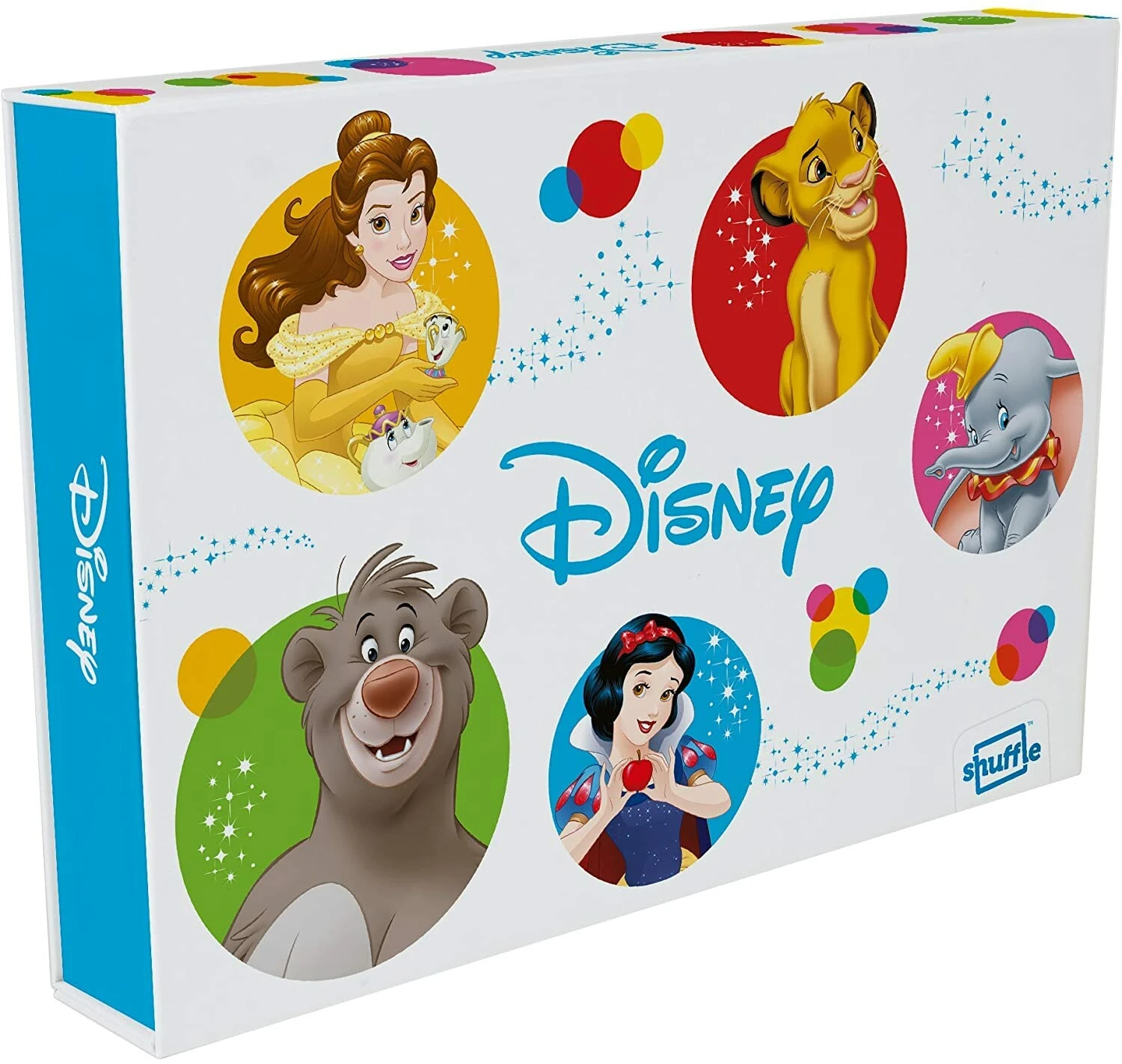 La boĂźte comprend 8 jeux de cartes diffĂ©rents mettant en scĂšne tous les personnages Disney Classic comme Bambi, Dumbo, Le Roi Lion, Le livre de la Jungle, la Belle et la BĂȘte, Blanche Neige et les 7 nains, Ariel la petite sirĂšne, ainsi qu’Aladdin.