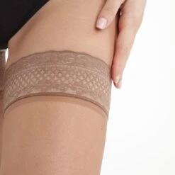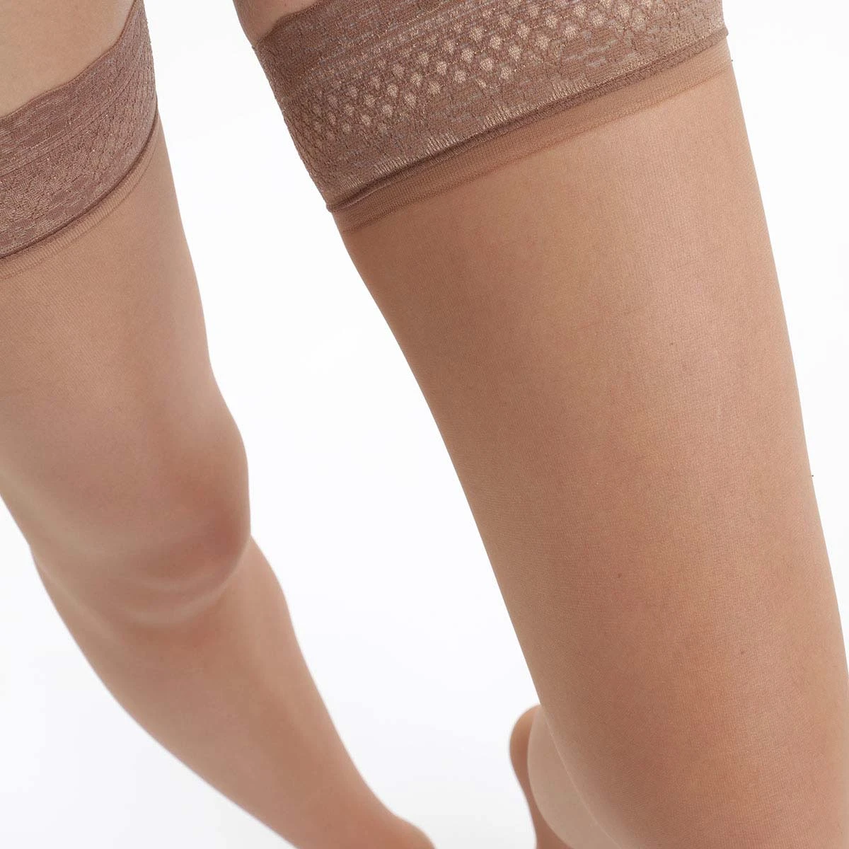 Les DIM Up Sublim Voile Brillant gazelle sublimeront vos jambes sans serrer avec leur jarretière très légère et autofixante