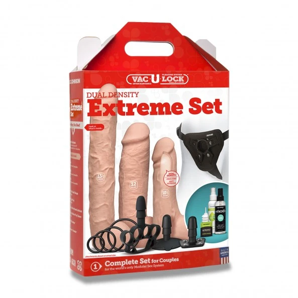 La firme Californienne propose ici un coffret Vac-U-Lock Extreme conçu pour des sensations extrĂȘmes, destinĂ© Ă une clientĂšle trĂšs avertie et pourvu de trois sextoys de taille imposante.