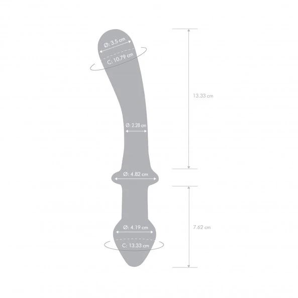En résumé et dans le détail : Le Dong et Plug en Verre Classic Curved Dual Ended est un jouet artisanal soufflé à la bouche borosilicaté de qualité supérieure et ultra-hygiénique. Avec une longueur totale de 23 cm, le cÎté vaginal offre une longueur insérable de 13,33 cm, une circonférence maximale de 10,79 cm et un diamÚtre maximal insérable de 3,5 cm. Le cÎté plug anal offre une longueur insérable de 7,62 cm, une circonférence maximale de 13,33 cm et un diamÚtre maximal insérable de 4,19 cm. 100% hypoallergénique et ultra-résistant aux chocs et à la rupture, ce jouet est compatible avec tous les lubrifiants et facile à nettoyer. Réactif à la température pour le jeu sensoriel, il est livré avec un pochon de rangement en satin blanc et son est poids de 364 Grs.