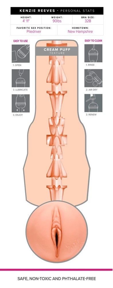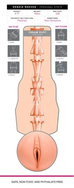 Vous pouvez maintenant donner vie Ă vos fantasmes les plus coquins avec Kenzie, quand vous le voulez en commandant l’un de ces masturbateurs pour hommes Creampuff .