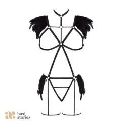 | Un ensemble audacieux, des plumes sur les épaules et les hanches soulignent les courbes séduisantes du corps. De minuscules lanières entremêlées créent un motif époustouflant sur le corps, tandis que les plumes donnent une image enjouée. Totalement ajustable, ce body harnais est proposé en taille unique et s’adapte à toutes les tailles (XS → XL) et à toutes les morphologies. |