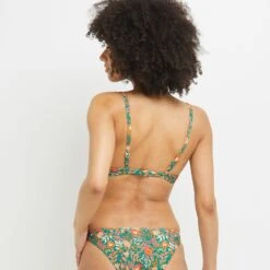« Une ligne de plage conçue en viscose ecovero ou fibres recyclées (40% minimum), selon les pièces : paréo, tunique, maillots… leurs joyeux motifs fleuris, leurs couleurs pimpantes, leur douceur sur la peau… c’est le bonheur, point. »