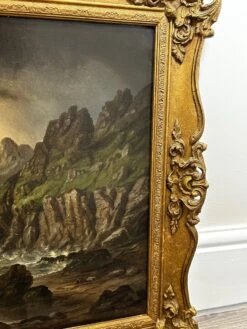 - 1 Large Dramatic Victorian 19th Century Seascape Marine Art Oil Painting Floundered Cornish Shipwreck Sailing Ship Beached By Millson Hunt FL(1875-1900).