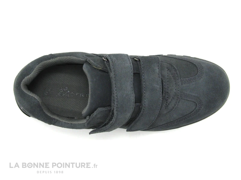 Dessus des tennis en croute de cuir bien souple de couleur grise pour ces baskets homme, qui se ferment facilement et rapidement avec les deux bandes scratch positionnées sur le coup de pied, les hommes pressés seront satisfaits !