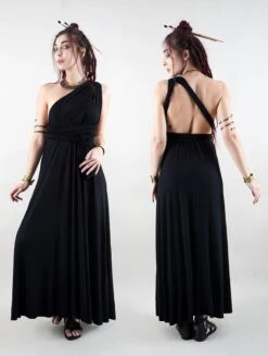 - Robe longue à col V plongeant avec joli un tombé drapé