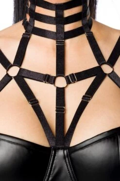 Très moulante, la robe wetlook Harnais enveloppera votre silhouette d’une matière proche du vinyle. La poitrine est mise en valeur et maintenue grâce à des bonnets coqués. C’est depuis votre décolleté que démarre le harnais qui se pose sur le haut du buste ; depuis son somptueux tour de cou, des liens extensibles et tous réglables s’étendent pour vous assurer un look bad-girl limite effronté.