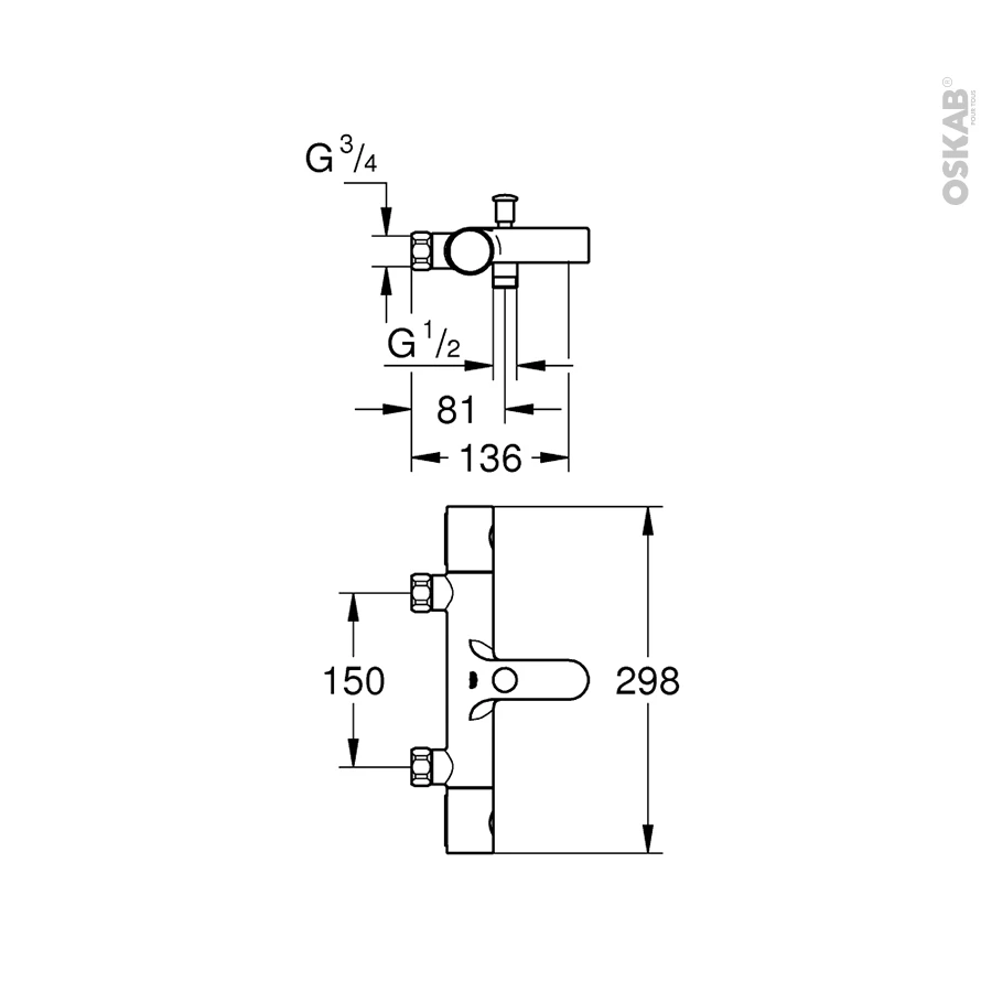 Dans le cas d’une pose du robinet sur la baignoire, complĂ©ter par des colonnettes.