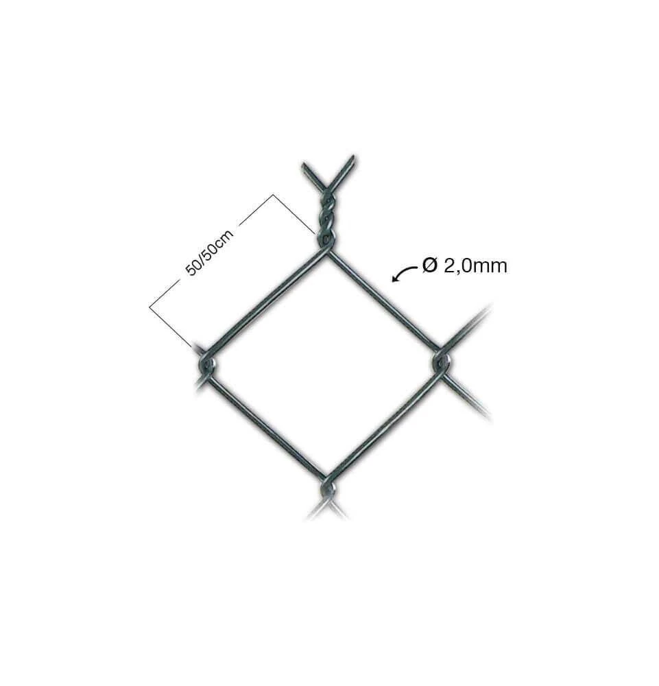 Grillage Ă maille losange simple torsion constituĂ© de fils galvanisĂ©s offrant une grande durĂ©e de vie. Ce grillage est le plus commun pour clĂŽturer les grands espaces, mĂȘmes accidentĂ©s, dans le but de sĂ©curiser et dĂ©limiter son terrain.
