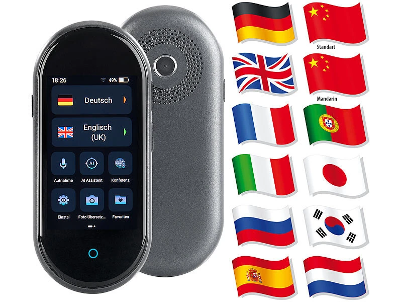 - Traduction vocale hors ligne en 12 langues : allemand, anglais, français, italien, russe, espagnol, chinois traditionnel et simplifié, portugais, japonais, coréen et néerlandais